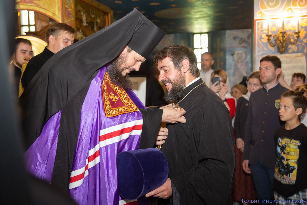 По окончании Литургии епископ и священство совершили славление перед образом Всех святых, в земле Русской просиявших. Протоиерей Димитрий Лескин от лица участников богослужения поблагодарил епископа Нестора за архипастырский визит в престольный день храма. Преосвященный владыка произнёс проповедь, по окончании которой поздравил присутствующих с престольным праздником. Владыка отметил труды директора Православной классической гимназии протоиерея Димитрия Лескина на ниве образовательной деятельности в Самарской области, которые он несёт 26 лет. Епископ Нестор вручил протоиерею Димитрию Лескину награду Святейшего Патриарха Московского и всея Руси Кирилла во внимание ко вкладу в развитие духовного просвещения – орден Русской Православной Церкви святого благоверного князя Даниила Московского II степени.