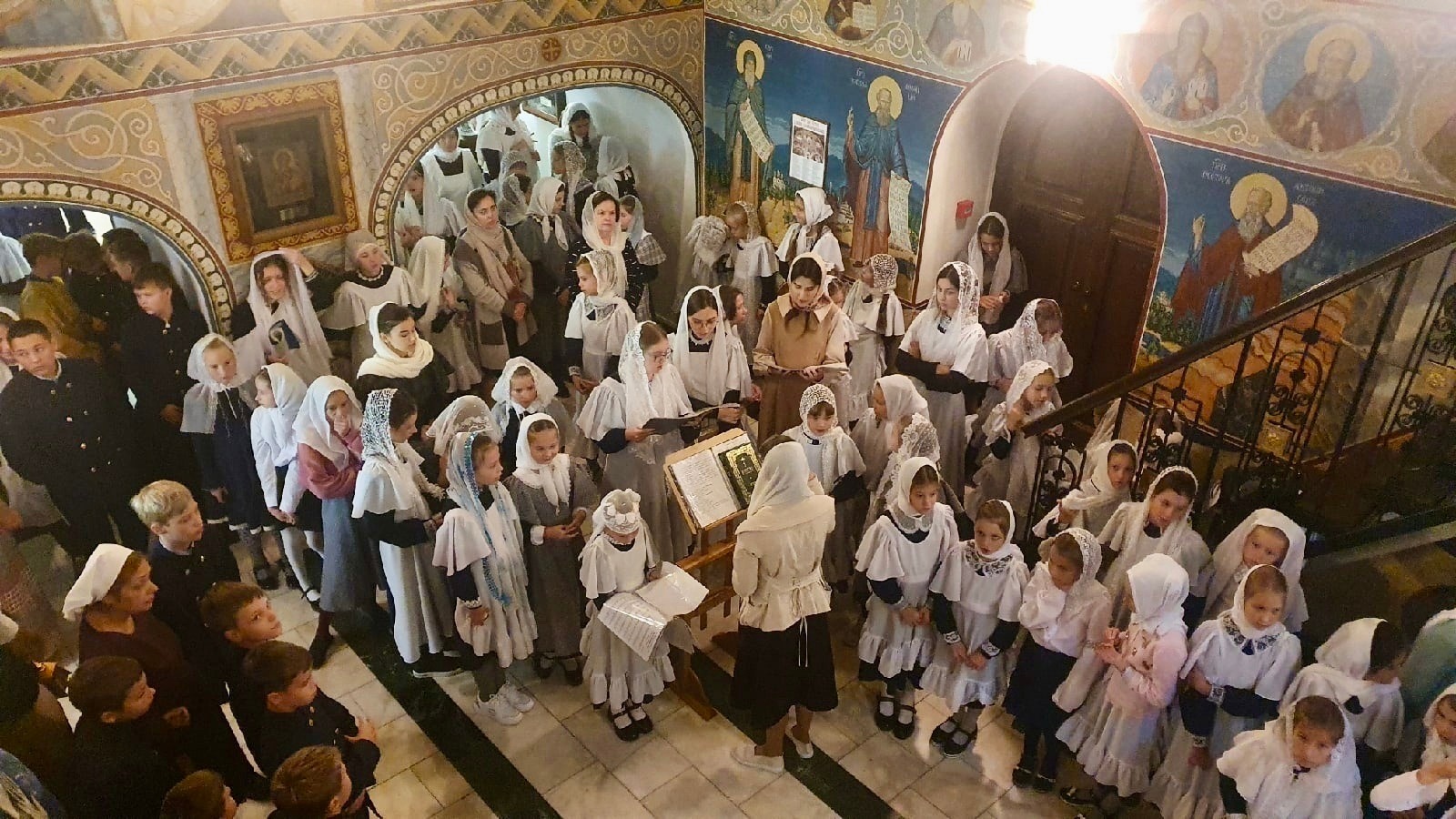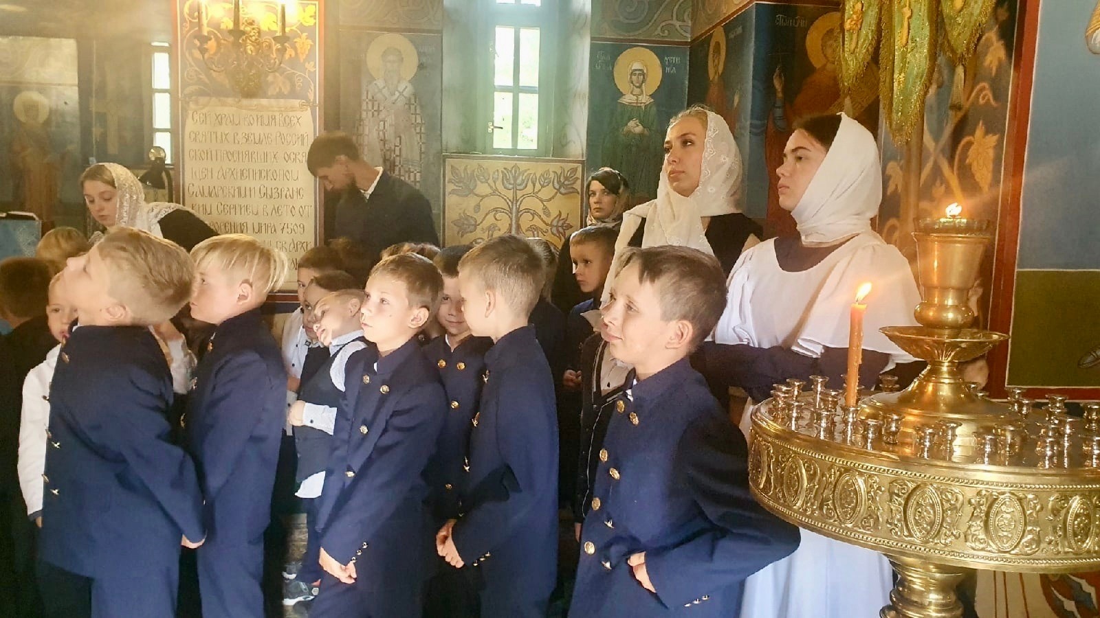 8 сентября в Храме Всех Святых, в земле русской просиявших, Православной классической гимназии состоялась первая в этом учебном году гимназическая Божественная литургия. Службу совершил клирик храма иерей Алексий Зимин в сопровождении большого гимназического хора под управлением Натальи Хартовой.