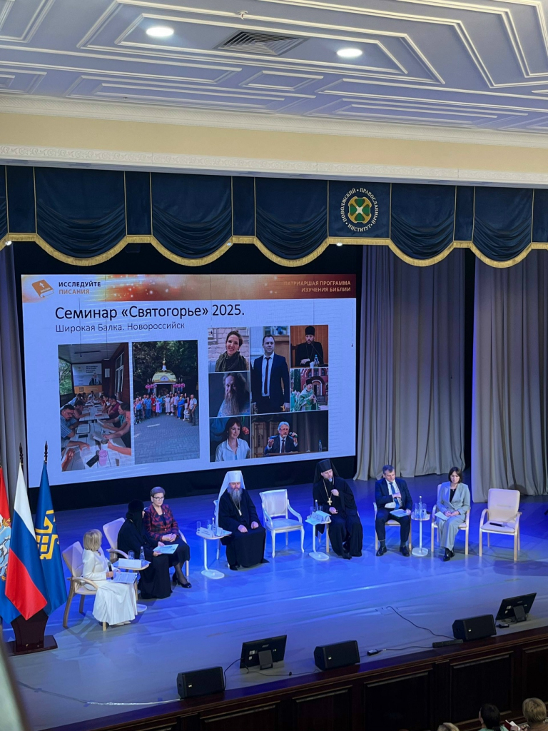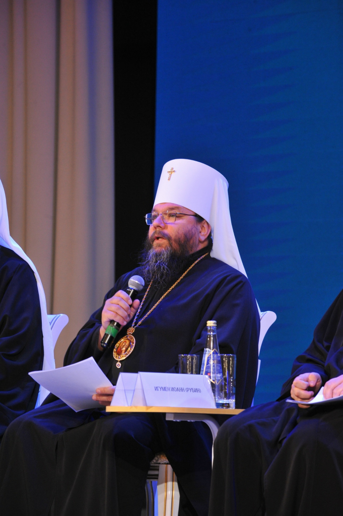 Далее гостям и участникам форума было представлено сообщение «Паломничество как инструмент катехизации. Образовательный молодежный семинар «Святогорье» игумена Иоанна (Рубина), заместителя председателя Синодального отдела религиозного образования и катехизации Русской Православной Церкви. Игумен Иоанн передал участникам форума приветствие от митрополита Екатеринбургского и Верхотурского Евгения и рассказал об опыте организации просветительских проектов. Одним из них является Патриаршая программа изучения Библии, в рамках которой организованы семинары по изучению Священного Писания и Приходские библейские группы, позволяющие выстроить систему изучения Писания на приходе. «К сожалению, – пояснил игумен, – мы понимаем, что знание Священного Писания в массе наших прихожан оставляет желать лучшего. Мы должны этот недостаток преодолеть». Также собравшиеся узнали об опыте организации молодёжного семинара «Святогорье», который проводится при участии Синодального отдела религиозного образования и катехизации Русской Православной Церкви и позволяет реализовывать интересные и интерактивные формы работы с молодёжью.